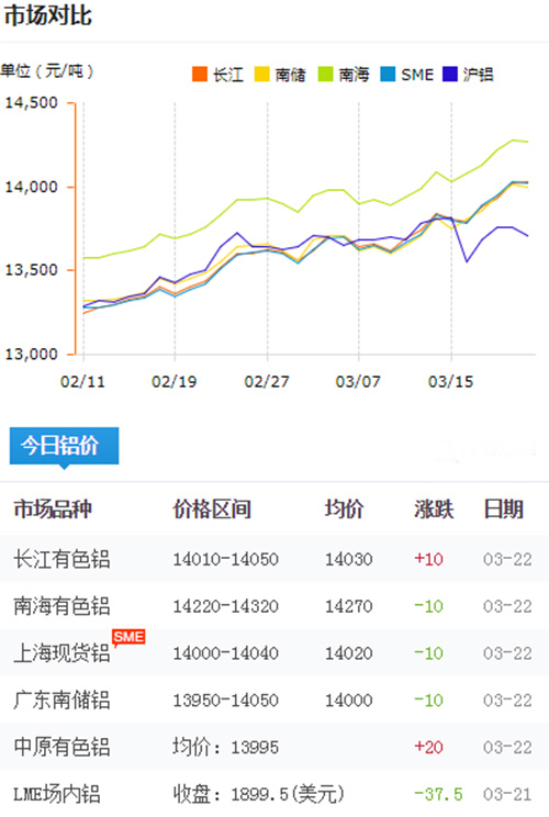 鋁錠價格今日鋁價2019-03-22