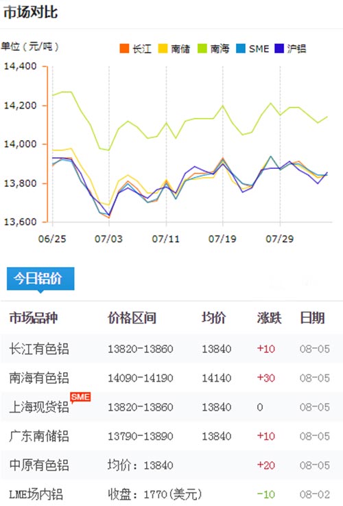 鋁錠價格今日鋁價2019-08-05