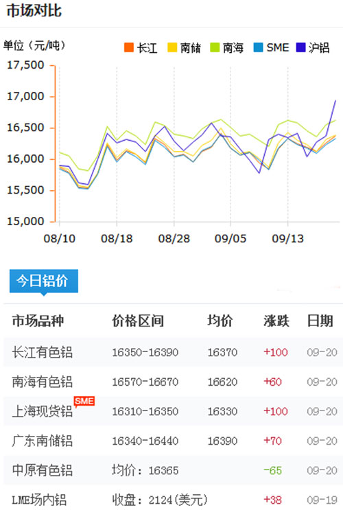 鋁錠價格今日鋁價2017-9-20