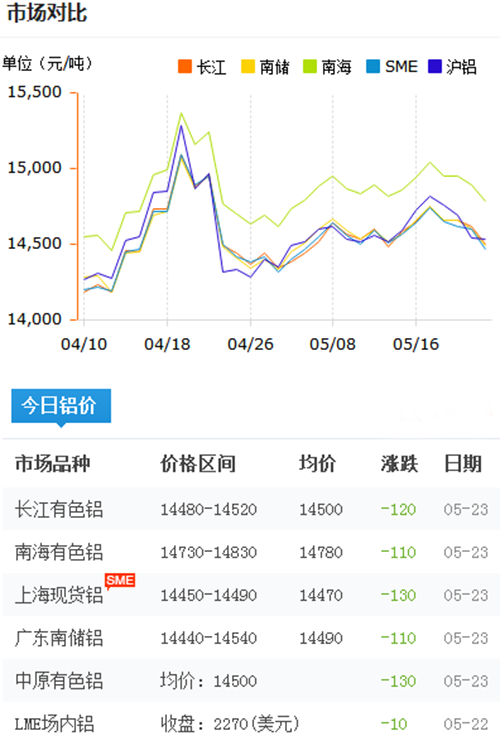 鋁錠價格今日鋁價2018-5-23