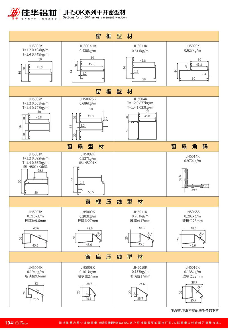 鋁型材規格型號:JH50K