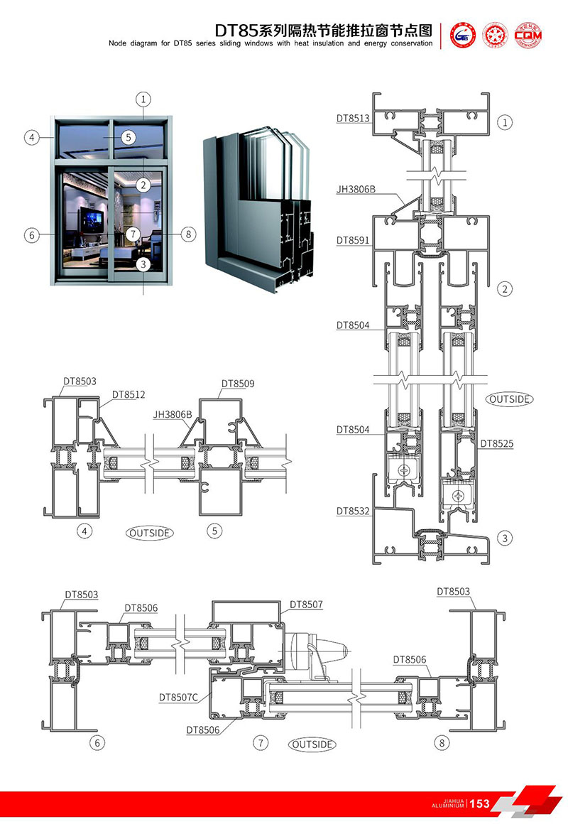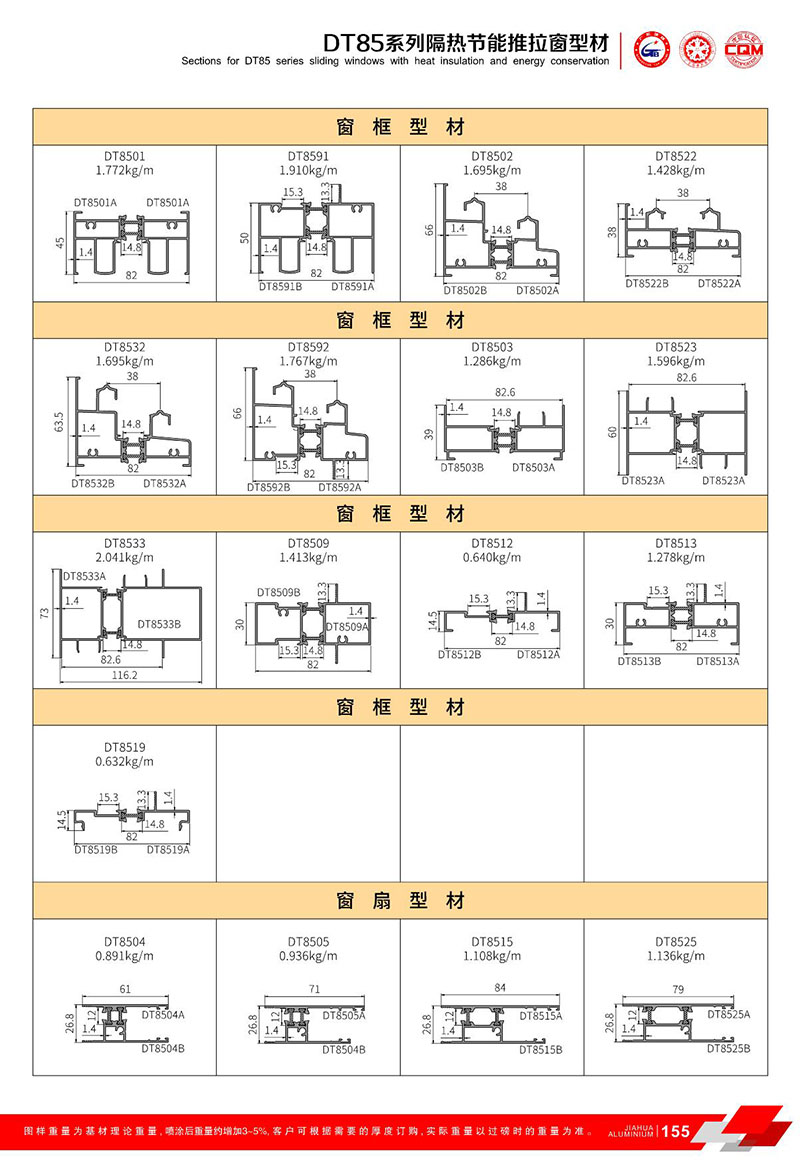 鋁型材規(guī)格型號:DT85推拉系列 B