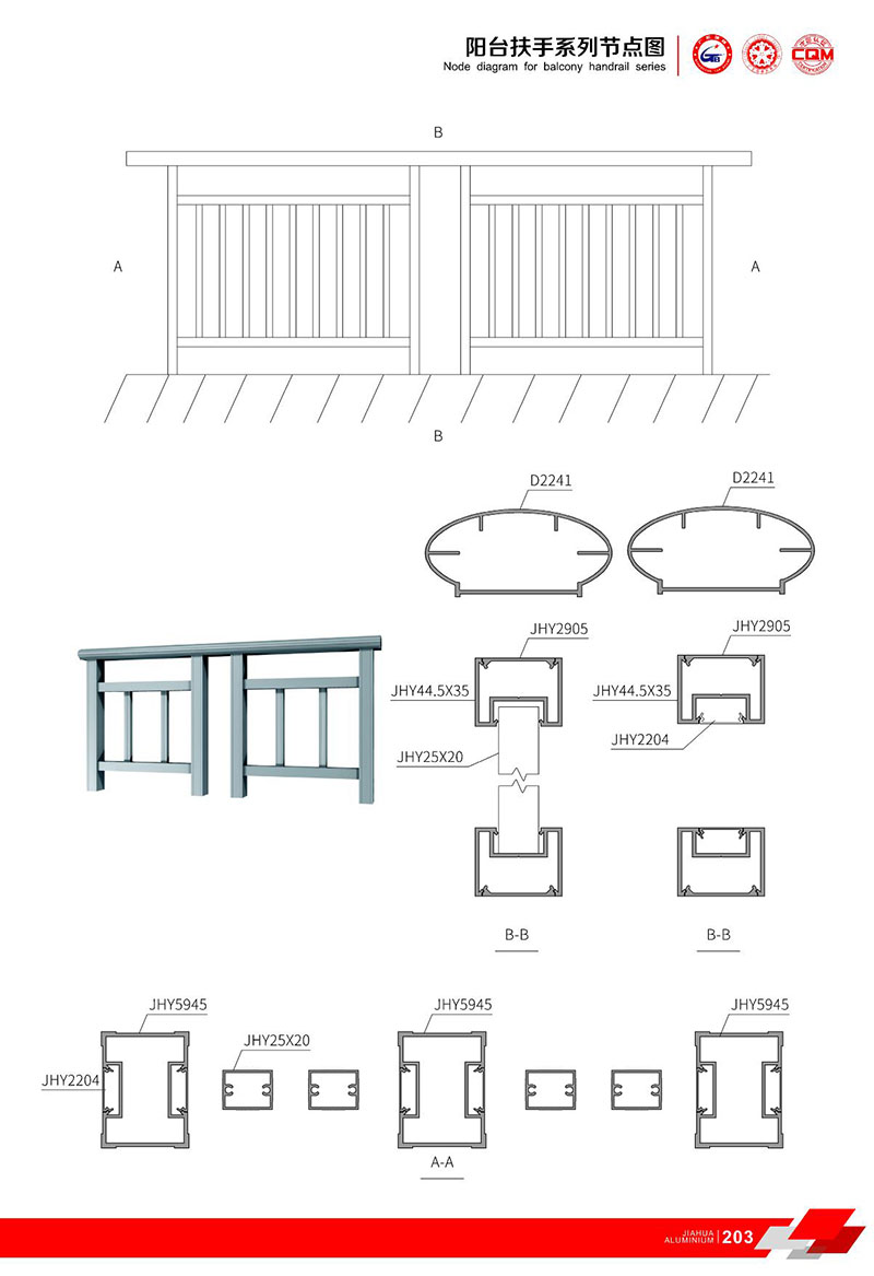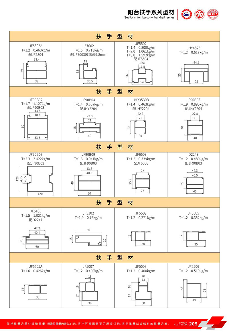 鋁型材規格型號:陽臺扶手 B
