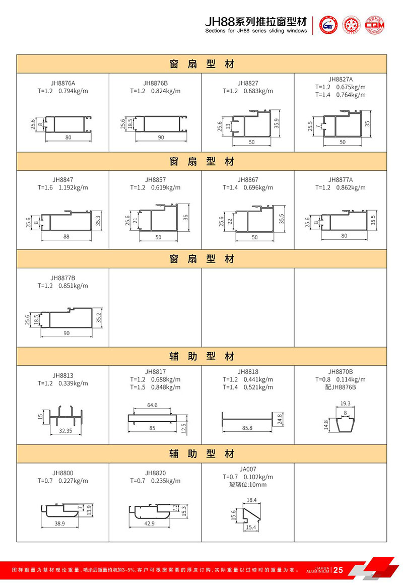 推拉窗系列 平開窗系列 平開門系列 斷橋隔熱系列 幕墻系列 通用型材系列