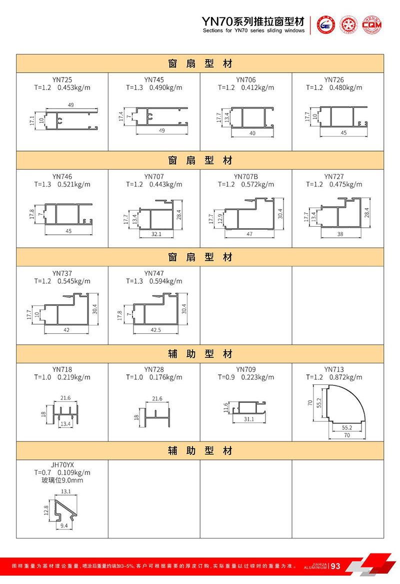 推拉窗系列 平開窗系列 平開門系列 斷橋隔熱系列 幕墻系列 通用型材系列